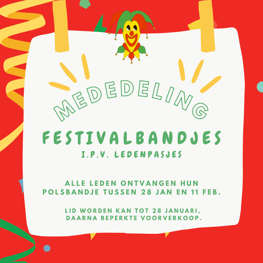 Dit jaar gaan we werken met polsbandjes als entreebewijs. Eén keertje je bandje omdoen en de hele carnaval geen zorgen meer!
